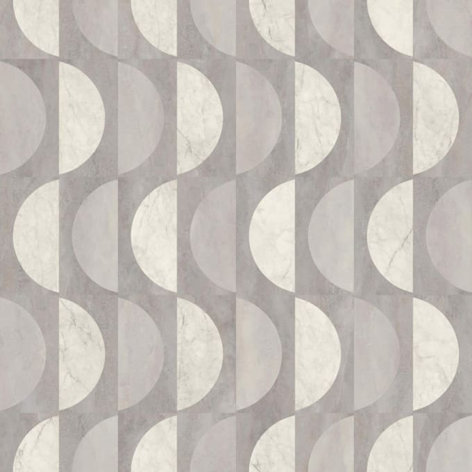 Bele loke iz marmorja dopolnjuje paleta hladnih kamnov v tem igrivem vzorcu.