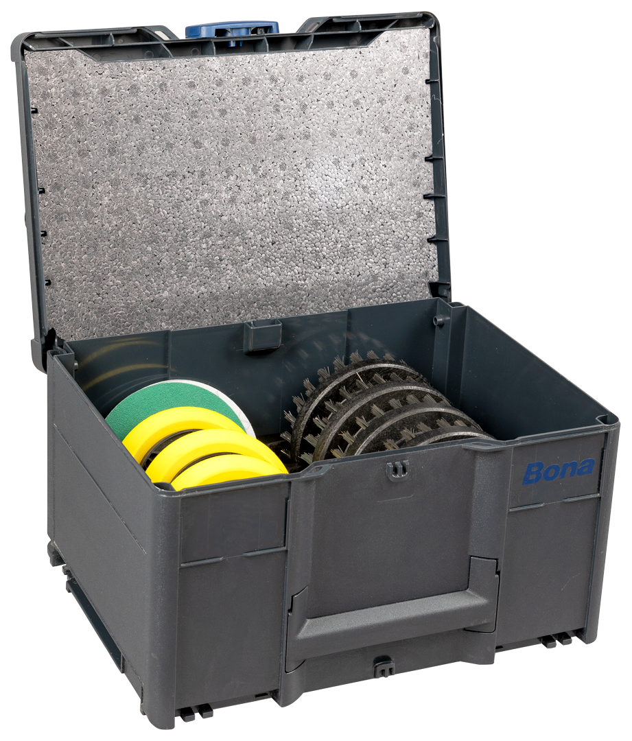 Zložljive škatle, ki jih je mogoče zakleniti med seboj. Vsaka škatla ima vložek, posebej zasnovan za najboljšo zaščito vaših orodij. Povezuje se z Bona Box Trolley za enostaven in gladek transport.