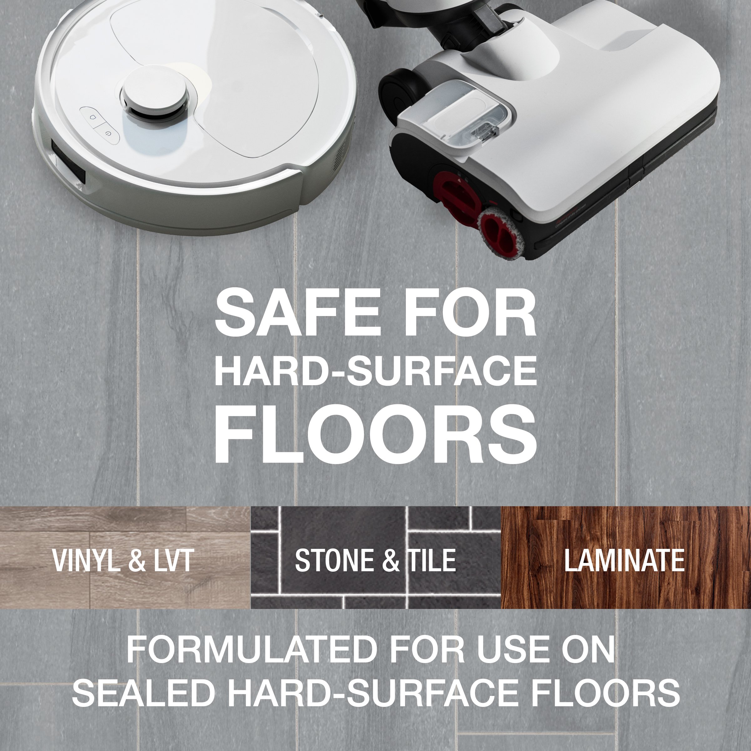 - Varno za trde talne obloge – pH uravnoteženo, varno za vse zatesnjene trde talne obloge, vključno s keramičnimi ploščicami, laminatom, linolejem, vinilom, marmorjem in drugimi