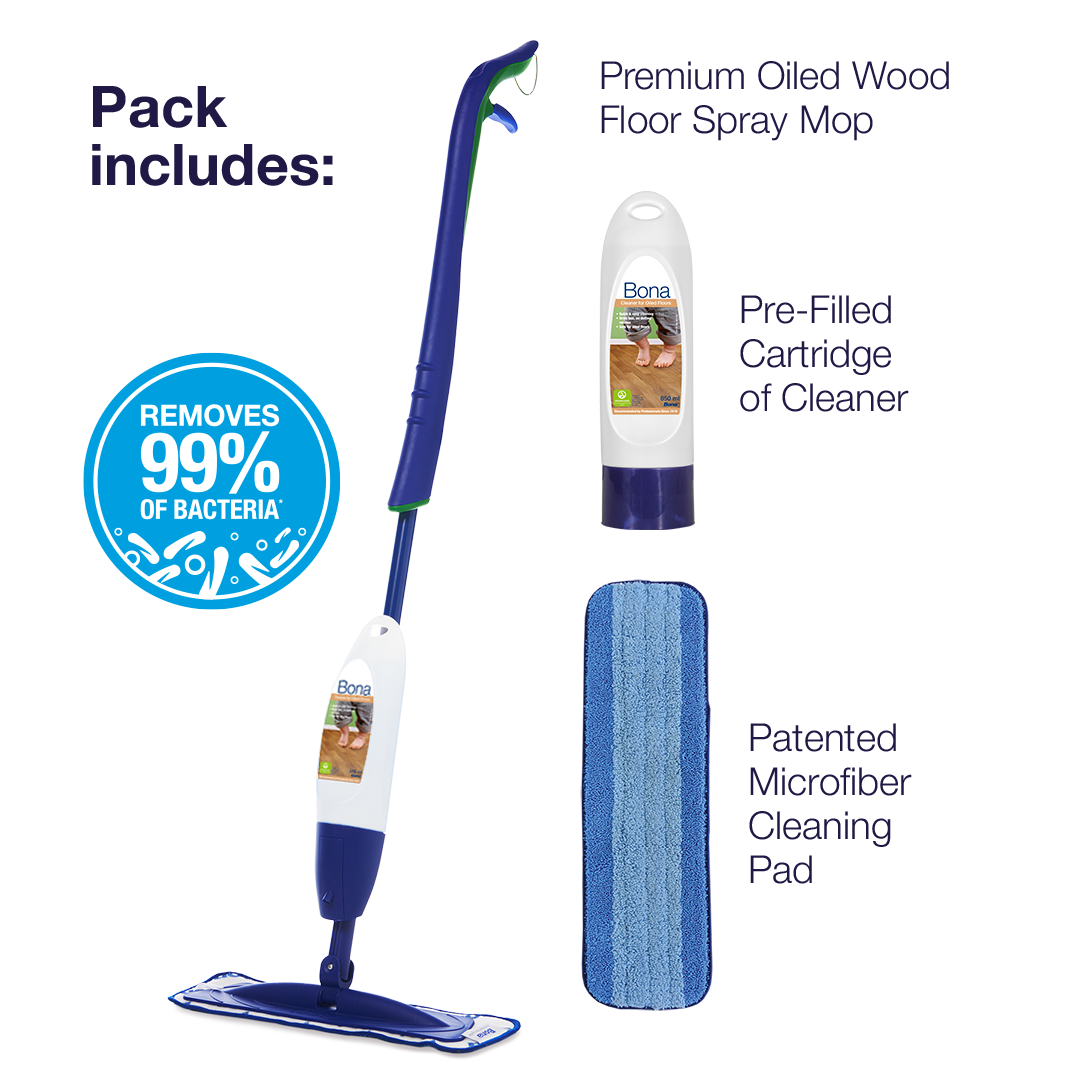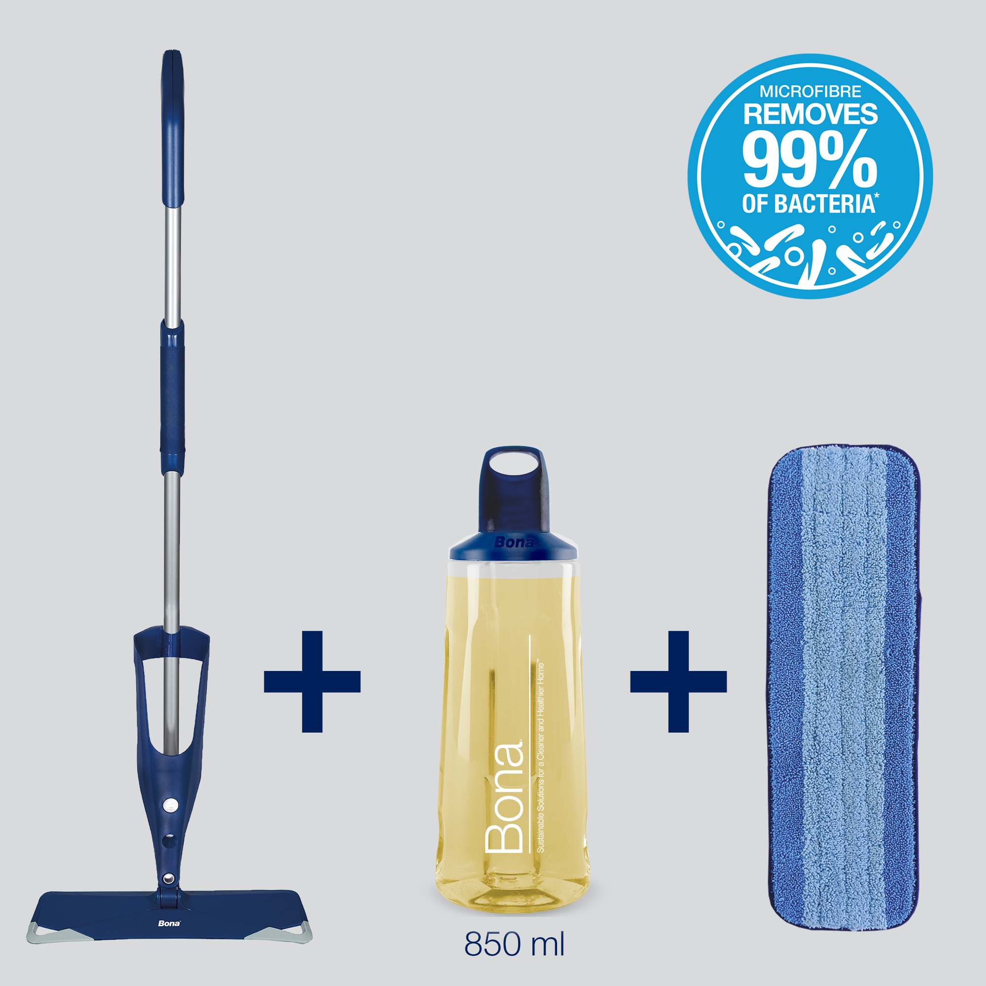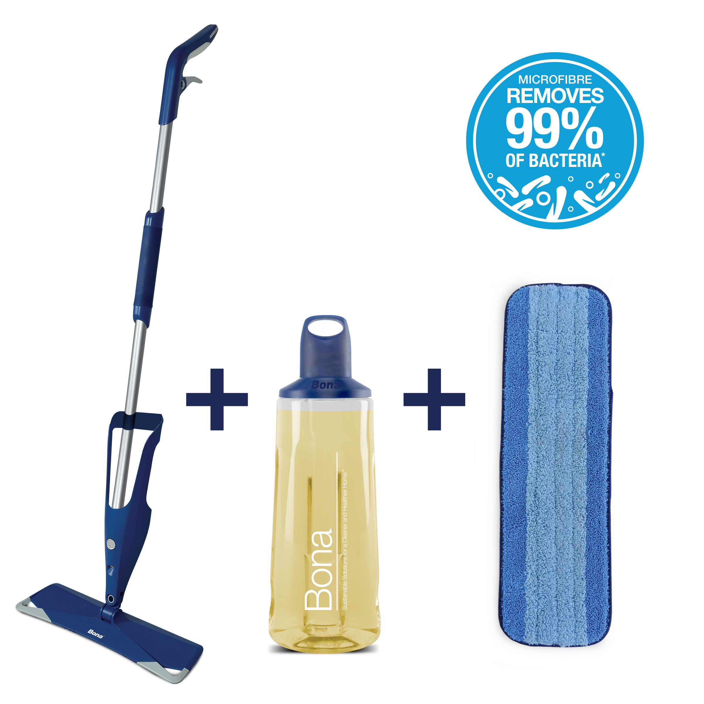 *Mikrovlakna odstranijo 99% E.coli in Listeria z lesenih ali LVT talnih oblog pri uporabi Bona Mikrovlakenske Čistilne Blazinice z Bona Čistilom za Lesena Tla, Bona Trda-Površina Tla