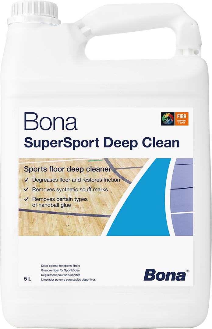 Bona SuperSport Deep Clean je bil zasnovan za odstranjevanje črnih sledi pet, rokometnega lepila ter nabiranja telesnih maščob in drugih onesnaževalcev z notranjih športnih površin.