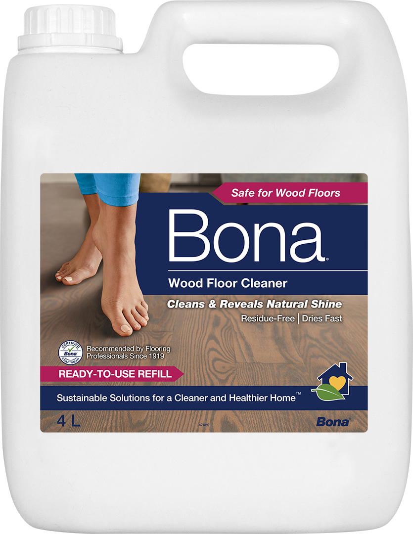 Ko iščete najboljši način za nego lesenih tal, mnogi izvajalci talnih oblog priporočajo uporabo Bona Wood Floor Cleaner. Raztopina brez ostankov, ki se hitro suši in je pH nevtralna, čisti lesena tla z nežnim in učinkovitim odstranjevanjem prahu, umazanije in madežev, da razkrije naravni sijaj in lepoto tal. Varno za vse nevoskane poliuretansko zaključene lesene talne obloge. Rešitve na vodni osnovi in certifikat GREENGUARD GOLD zagotavljajo varen izdelek za vaš dom.