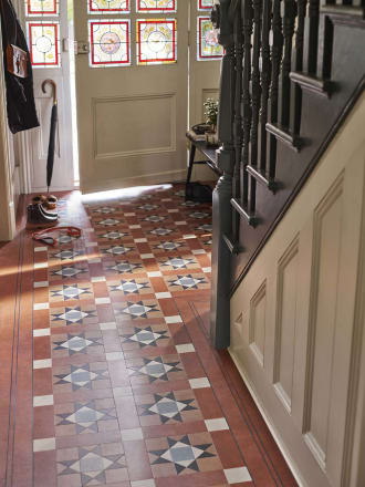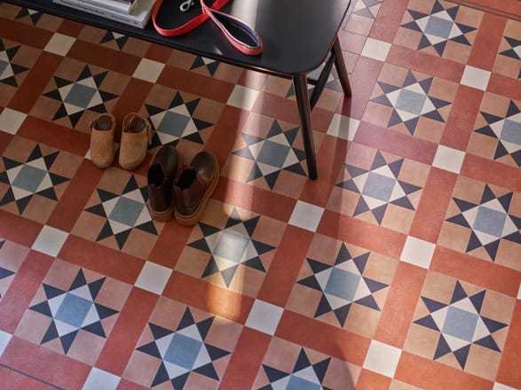 Štirje zemeljski toni, ki jih prekine izbruh modre. Te vsestranske talne obloge delujejo enako dobro kot celotna tla ali kot izstopajoča značilnost in se popolnoma prilegajo tradicionalni shemi.