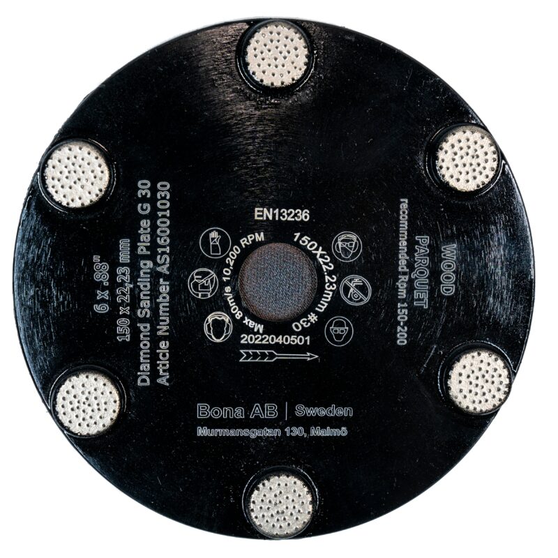 Diamantna brusna plošča ponuja učinkovito odstranjevanje trdih lakov, ostankov lepila ter izravnavo neravnih tal iz trdega lesa. Uporabite kot prvi korak pred standardnim zaporedjem brušenja, ko je potrebno grobo brušenje. Oblikovanje diamantnih segmentov preprečuje mašenje in zagotavlja stalno visoko stopnjo odstranjevanja. Diski s premerom 150 mm so zasnovani za uporabo z Bona FlexiSand 1.9, opremljenim s PowerDrive Connect ali PowerDrive. Lahko se namesti tudi na ročne stroje, kot je Bona SupraFlex.