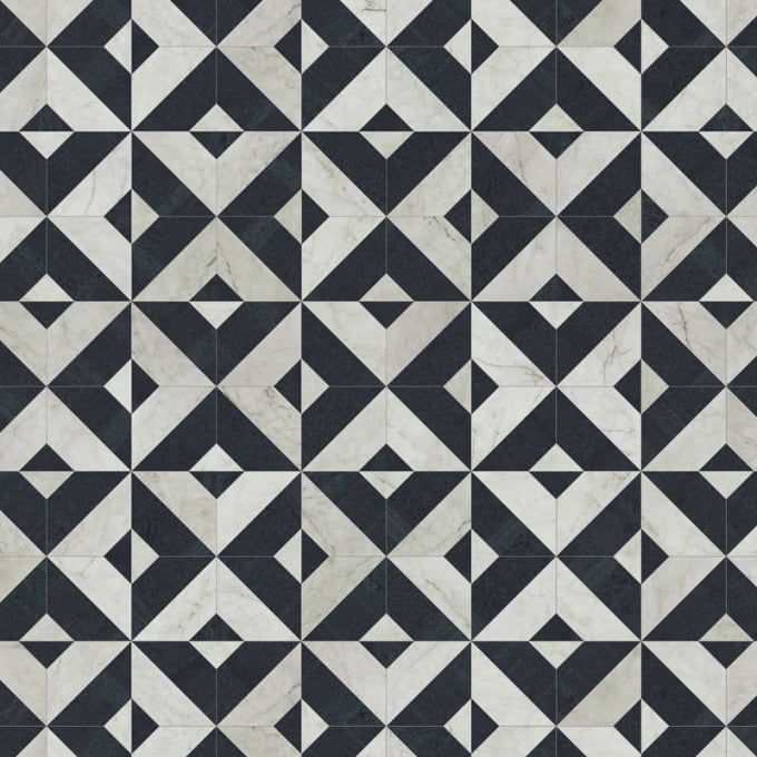 Presenetljivo, a preprosto – kontrast bogatega oglja s svežim marmorjem za dramatično geometrijsko izjavo.