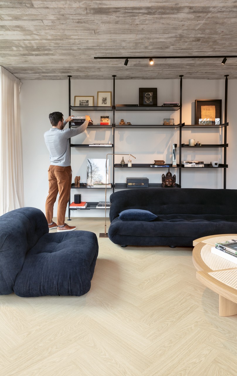 Ustvarjate vzorec ribje kosti? Običajno bi potrebovali dve različni vrsti desk, A in B, kar bi pomenilo počasnejšo in zahtevnejšo namestitev. Ne z Quick-Step talnimi oblogami v vzorcu ribje kosti. Naša talna obloga v vzorcu ribje kosti ima eno genialno vrsto deske, ki se zaskoči na obeh straneh, zahvaljujoč sistemu Unizip. V kratkem času boste imeli čudovito novo talno oblogo v vzorcu ribje kosti!