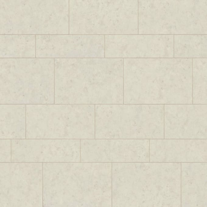 Svetel in bled apnenec je opredeljen s hladnim betonskim trakom, ki daje sodoben in svež občutek.