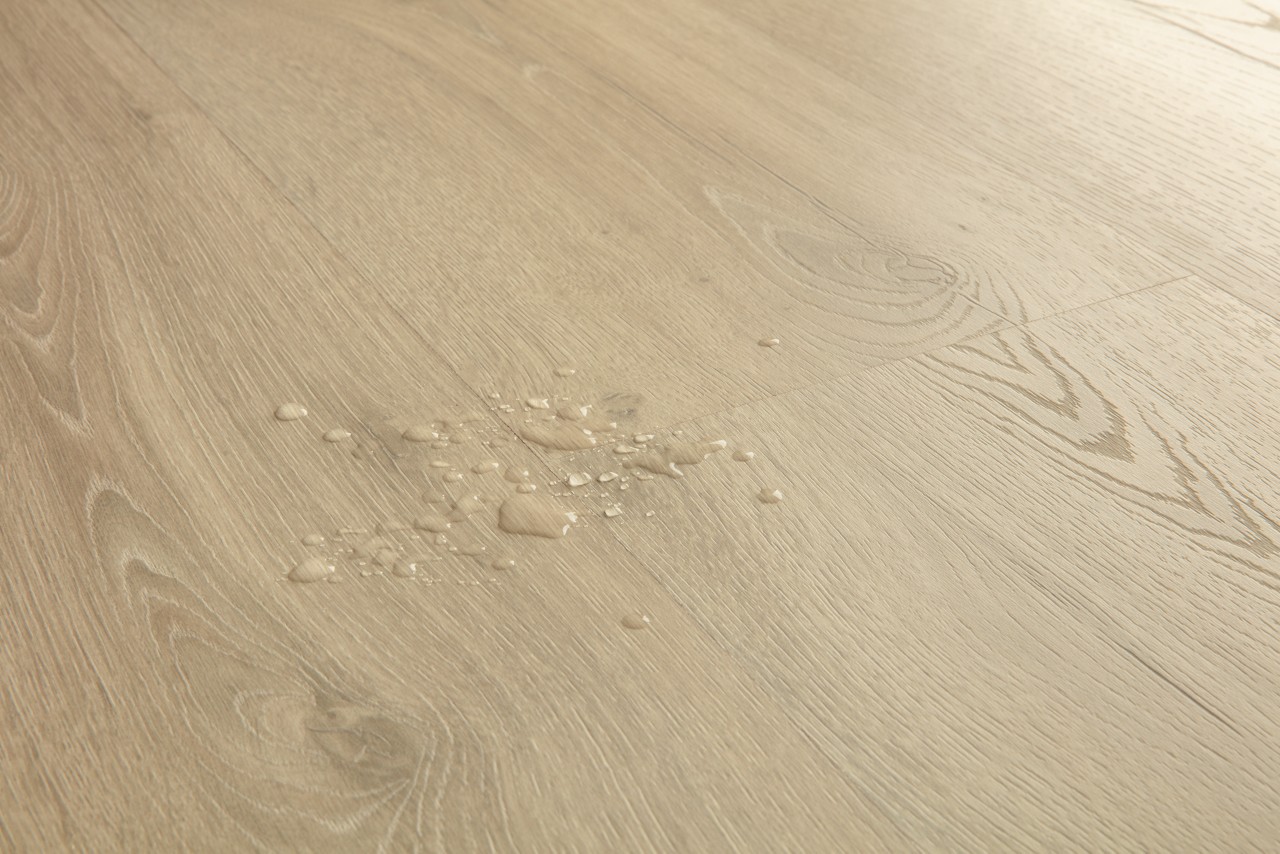 Pozabite na težave z vlago z izbiro vodoodporne Quick-Step talne obloge. Ta tla niso le izjemno elegantna in naravna, ampak so tudi 100% odporna na površinsko vlago, kar olajša čiščenje kot kdajkoli prej!