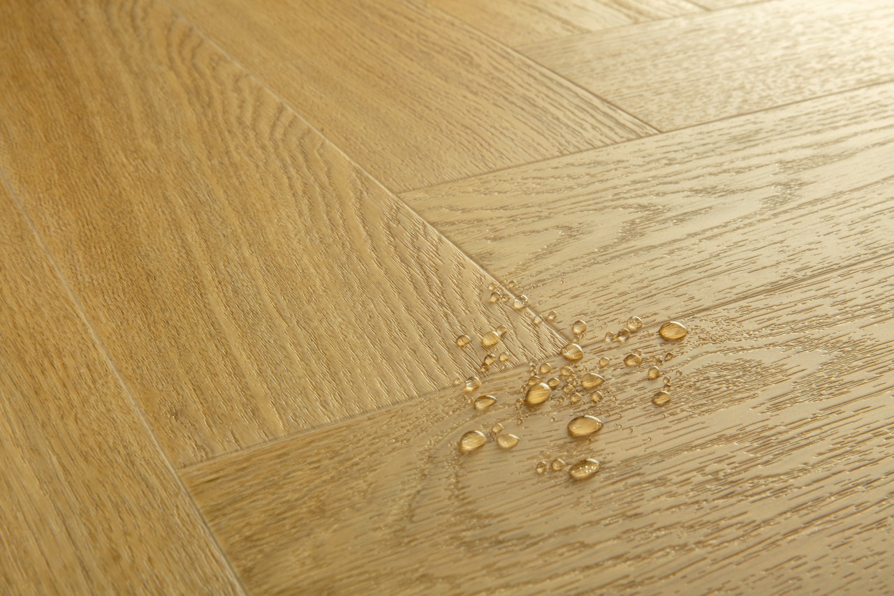 Quick-Step talne obloge s tehnologijo Scratch Guard so do desetkrat bolj odporne na praske kot tla brez Scratch Guard.