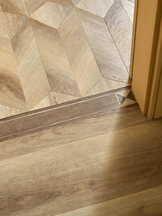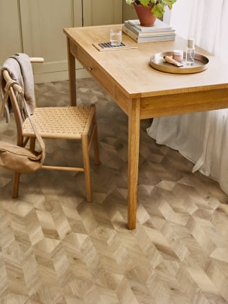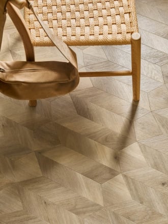 Majhni, nežni kosi v Venetian Parquet Wood poudarjajo čudovite zlate tone Buxton Oak, kar daje dizajnu skoraj pernat videz.